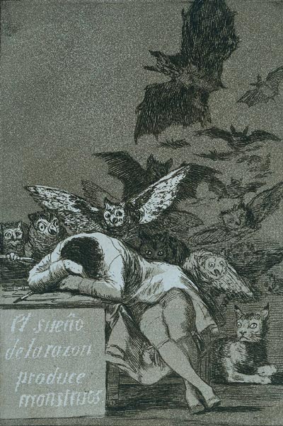 PRO FORMA (De reclame van Yahoo aan de rechterzijde is weg te clicken door op >> bij de scrollbalk te clicken.) (Site is nog in opbouw / Site is still under construction) KUNSTFILOSOFIE OFTEWEL WAT IS KUNST? Afbeelding links: (Francisco Jos� de) Goya (y Lucientes) (1746-1828) El sueno de la razon produce monstruos (De droom van de rede brengt monsters voort) nr 43 uit 'Los Caprichos' , ca. 1797 ets en aquatint, Rijksmuseum Amsterdam |