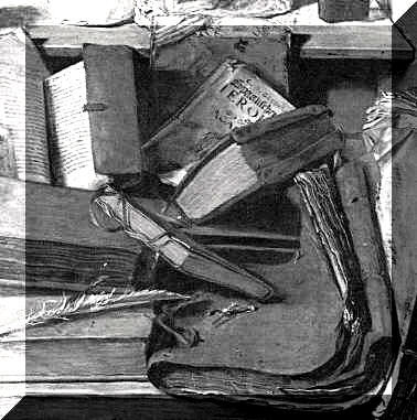 Onbekende Nederlandse meester, stilleven met boeken, ca 1628, 61,3 x 97,4 cm zwart-wit en gedeeltelijke afbeelding (klik) |