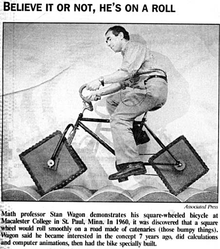 1 Rechts ziet u een voorloper, nou ja, voorfietser van de sEVEN sNOWWHITES sOCIETY uit het tijdperk toen kleuren nog niet bestonden en alles veel duidelijker was. Volgens de fietsica fietst die fiets als een trein. Ook de zEVEN zEVENDE zEVEN hebben een "vierkante fiets" ontworpen, niet alleen met vierkante wielen maar ook met vierkant kettingblad, vierkante assen en vierkante hoofd- en bijbel. Momenteel is de sEVEN sNOWWHITES sOCIETY druk in de weer om een rond vierkant te ontwerpen. De eerste proeven in het geheime laboratorium zijn onmiskenbaar veelbelovend. Ach ja, de logica is ook maar een vooroordeel. |