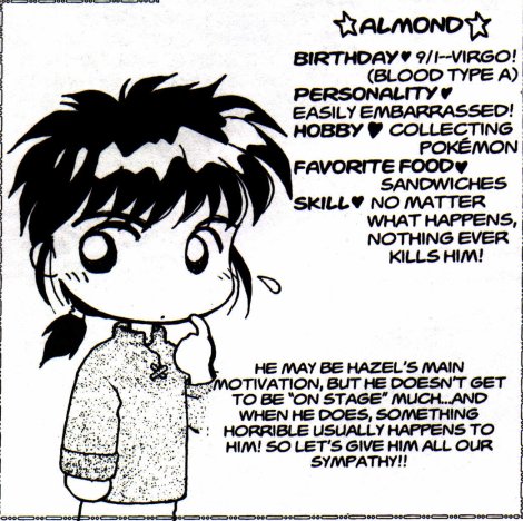 He wants to collect Pokemon, but never gets to because Hazel drags him along whenever she wants to do something. When he does try to catch a Pokemon, Hazel scares it away before he can! Squirtle looks up to him as its big brother. Both Hazel and Coconut like him and they fight over him almost all then time, even though he never notices.
