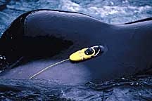 montert til ryggfinnen. Keikos stab ville da kunne ta
