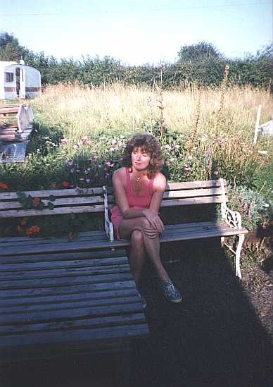 | Elaine listens intently to ideas on sustainable living................... The caravan can be seen in the background, it doubles up as a store and guest accommodation. Nick is currently building a bungalow on te site using sustainable building techniques. Nothing is wasted, as the existing living space will find a new role as storage or workshop space when the bungalow is completed. I hope to be able to update this page on news of progress on this project as and when I get it. There will be additional sections describing some of the techniques used in this sustainable development. |