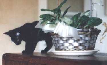 | Monty - The Monson Road Cat Montagu Ratbag Boak is a small black furry catpuss who has recently come to live in Monson Road. He is all-black apart from a small white fleck on his chest and is only 4 months old. He was bought from a very nice lady who lives in Montagu Gardens, Wallington and was thus christened Monty. If anyone is familiar with the Derek Tangye books about life in rural Cornwall in the 50's and 60's then Monty the Cat was featured in his early books. Another reference may be to the popular UK film "The Full Monty" about grown men providing popular entertainment in Sheffield. We we have our very own version "Monty- the Fool" a story about a kitten providing popular entertainment in Monson Road. Monty has just had the last of his injections and so will be allowed out for the first time on October 4th. Female visitors to Monson Road are advised not to wear tights - but it's OK for blokes I suppose. |