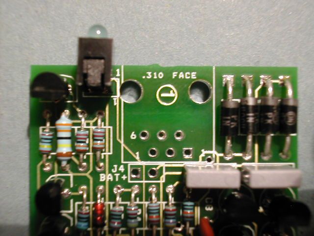 | Step 11. Fit the LED. It may be in a plastic holder like this one or just a plain LED. The anode or +ve goes to the square pad on the pcb. |
