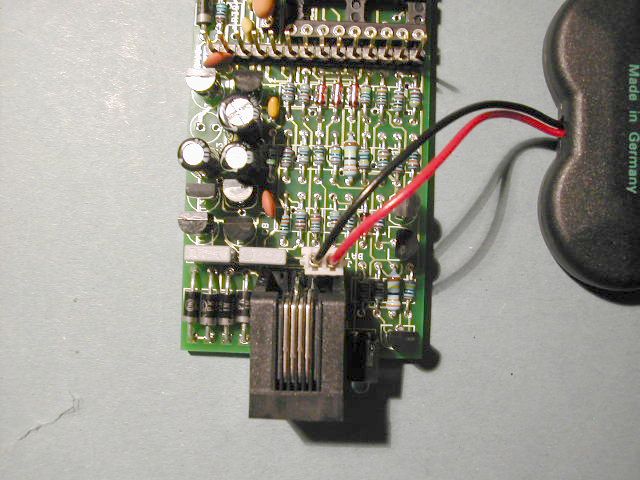 Step 13. Fit the RJ11 phone line connector and the 2 pin header for the battery connection. |