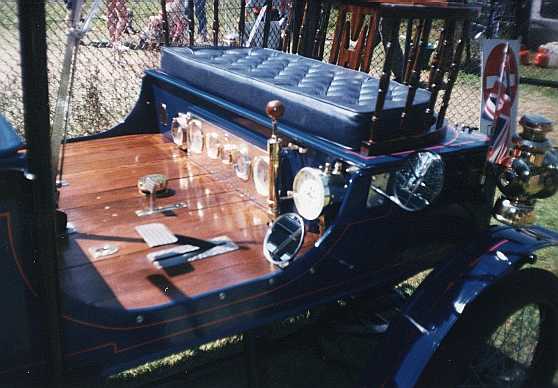 | Photo below: A 1913 White Steam Car with a Stanley Steamer behind. Taken at Launceston Steam Rally 1997. The White is I believe owned by Dr. Dyke a local steam car enthusiast. Visit the Steam Car Club of Great Britain. Plans for a self build lightweight steam buggy |