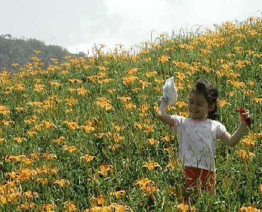 When the flowers are bloomng at Sixteen Stones Mountain (Shr-Ryo-Shr-Shan), the hills glow with the orange color of the blooms of the Jin-zhen flower. Not sure exactly what this flower translates to in English, but the literal translation is "Golden Needle".