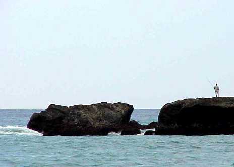 A Brave Soul Fishing from the Rocks at Chichi Beach