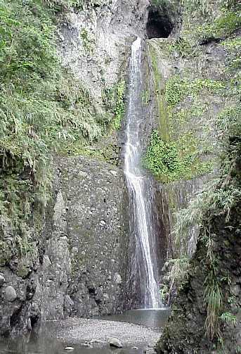 This beautiful waterfall is in the Huatong Valley. Access to it is more difficult than other waterfalls in this area. This is because at present, there are no signs to direct you here, and the access road is narrow and earthquake damaged. Also, to get a good view of the waterfall, you will need to climb out on some fairly steep rocks which look less than safe.