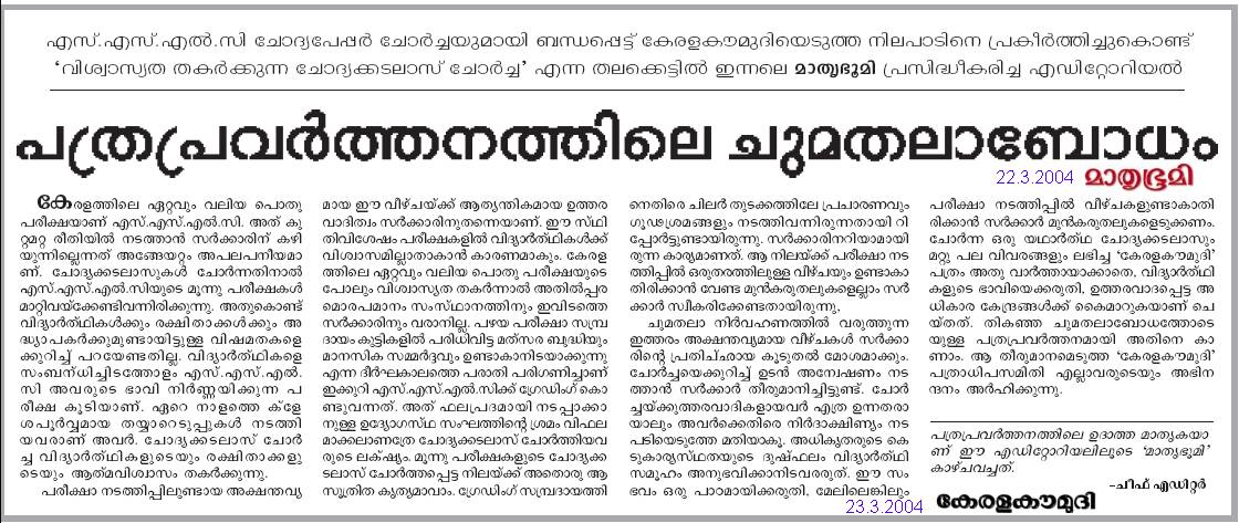 as reported in Kerala Kaumudi on 21.3.2005. Note that it