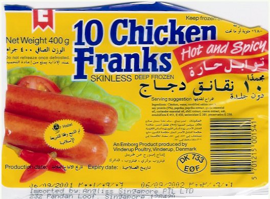 The wrapper says it is imported to Singapore by a company. These are all providing 'bread and butter' to many poultry families in Denmark. Middle East is also a big market for Danish Chicken products where the products are clearly marked 'Halal' to conform to religious laws and customs in those countries. Instead of finding ways to pack and market our products (in the rest of India and abroad) our Government and people are now trying to borrow the money from the vultures like World Bank and ADB - a blueprint for ultimate disaster. [To be continued...] |