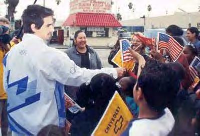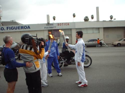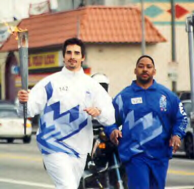 Kevin Richardson became is Just Within Reach environmental foundation, carried the flame for three blocks on Figueroa Street in downtown Los Angeles.