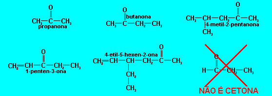 As cetonas apresentam um �tomo de oxig�nio licado a um carbono secund�rio, isto �, ligado a dois outros carbonos.