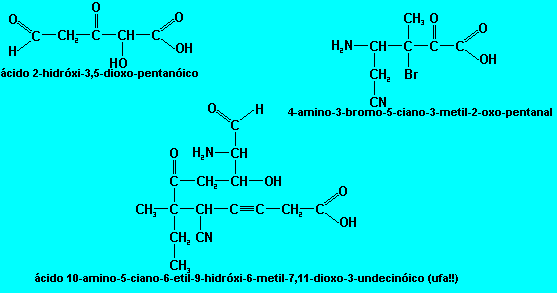 | Função | haleto orgânico | álcool | amina | cetona | aldeído | nitrila | ácido carboxílico |