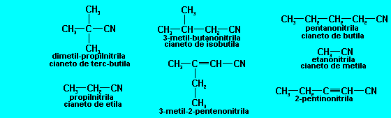 As nitrilas tem duas nomenclaturas: a oficial e a usual. Na oficial dá-se o nome do hidrocarboneto correspondente, levando-se em consideração o carbono ligado ao nitrogênio, seguindo-se do sufixo nitrila. Na nomenclatura usual escreve-se cianeto mais a preposição de mais o nome do radical sem levar em consideração o carbono ligado ao nitrogênio.