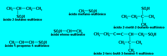 Para nomeá-los escreve-se ácido, mais o nome do hidrocarboneto correspondente, mais a palavra sulfônico.