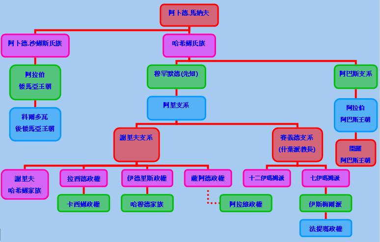 2a. 阿巴斯支系起源於哈希姆的孫阿巴斯。該支系在8世紀中葉起事推翻倭馬亞王朝,建立阿巴斯王
