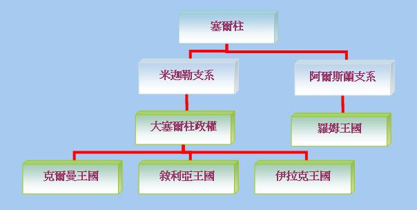 塞爾柱氏族為突厥.烏古思Turkish Oughuz人(其後又稱土庫曼Turkmen人)的一個氏族,其先祖為該氏 族的首領塞爾柱Seljuk。其後塞爾柱的後裔分為兩個支系:米迦勒Mikail支系和阿爾斯蘭Arslan 支系。約1038年米迦勒支系的圖格里爾一世Toghril I在伊朗東部建立了一個大塞爾柱Great Seljuk政權 ,並發動擴張,征服伊朗全境。1055年更征服伊拉克,控制阿拉伯朝廷,自此成為西亞強國。但從11世紀末起 ,大塞爾柱政權陷入分裂,先後分出克爾曼Kirman(位於伊朗)、敘利亞、伊拉克等國。而阿爾斯蘭支系則在小 亞細亞建立羅姆Rum王國。在伊朗和伊拉克-敘利亞地區的塞爾柱王朝諸國在12世紀先後為各地的地方政權所滅 。惟羅姆王國則繼續統治小亞細亞,並構成西方基督教國家的嚴重威脅,其後更曾引致羅馬教廷發動十字軍遠 征。羅姆最後在14世紀初蒙古入侵之下土崩瓦解。