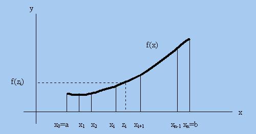 interval)(見下圖)。接著在每個子區間([xi, xi+1])內任意選取一點(zi