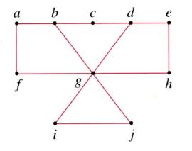 (a) 假設下圖的點(a - j)代表某市鎮10間店鋪的位置,各線段代表連接這些店鋪的道路。某推銷員想設計某