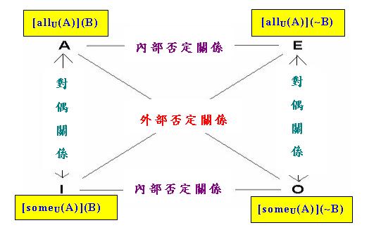 「(下)反對關係」和「差等關係」分別修改為「外部否定(Outer Negation)關係」(又稱「前補(Complement)關