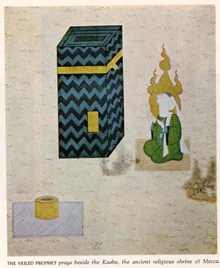 A lone Muhammad prays beside Kaaba, the religious shrine supposedly