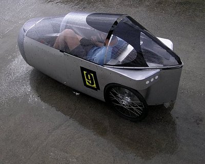 John Falconer attracted a lot of attention with this very innovative velomobile. This FWD, RWS tricycle is made mostly of sheet aluminium and is riveted together. John won a trophy for having the most outstanding machine at the HPC.