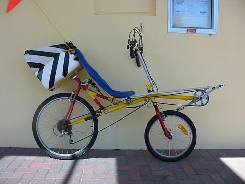 back to the main photo page Foggo Fully Suspended SWB - An earlier iteration of the fully suspended SWB being developed by Martin Foggo of Rotorua. This particular machine has a Pantour suspension hub fitted to the front wheel. back to the main photo page
