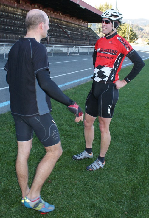 Before the attempt, Bob goes off for a warm-up ride.