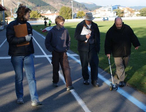 Measuring off the final part lap. Left to Right: Annaliisa Farrell,