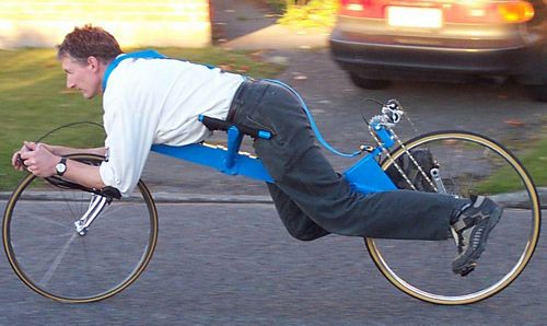 back to the main photo page Prone Cycle - A Christchurch-designed and Christchurch-built prone HPV. Designer Steve Martin. Rider Ross Ward. Profiled in the April 2003 newsletter. back to the main photo page