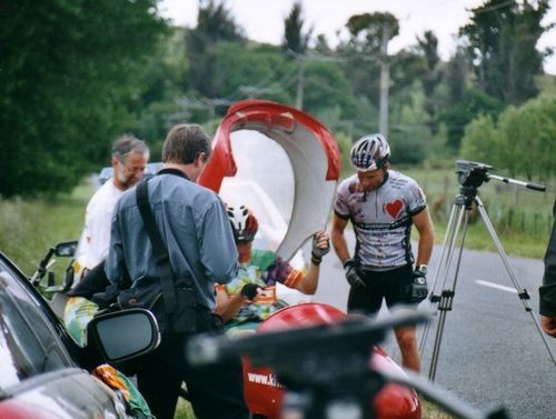 The "Red October" - photos taken in mid November 2004, as the Red October was prepared for a media event organised by Steve Gurney for the "Crafar Crouch Crazy Commuters Race" he is organising.
