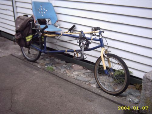 back to the main photo page Chriss Taylor's LWB - low cost LWB, with a found plastic seat. Used for short distance touring. Designed and built by Chriss taylor of Rotorua. back to the main photo page