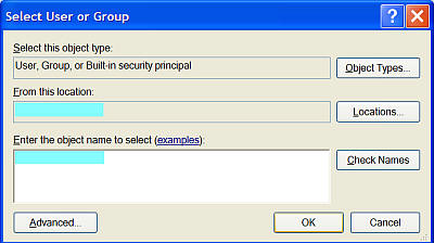 Next, select a user or group to add from the local computer or remote location (under From this location Fig. 7). If you are not sure the format to enter, click the underlined examples word. For users in the local computer not joined to a domain, just enter the user name in the Enter the object name to select box and the computer name will be filled in (Fig. 7).
