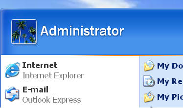 1.2. Administrator and administrative user accounts in Windows XP Professional and Home Editions1.2.1. Administrator and administrative user accounts are not the same in Windows XP ProfessionalDon't panic: first ask if your account is the built-in Administrator account (equivalent to Unix/Linux root administrator); this account cannot be deleted (but can be renamed or disabled via Local Security Policy) and is referred to with a capital A in this article as it appears on the Windows XP Start menu (fig. 1) and in User Account when logged on as Administrator (see fig. 2 below). If instead it is a user account with administrative privileges (with a small letter "a" in this article) which you can create or delete after installation, it would be less drastic to lose the password in this scenario because you still have the built-in Administrator account to fall back on.