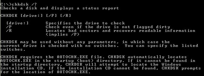 Disc Management: chkdsk, diskpart, formatChkdskThis is similar to the chkdsk command in the command prompt and requires autochk.exe. It would be useful if you suspect hard disc error and cannot run chkdsk otherwise. There is no /F switch (as in chkdsk in cmd) but you can use the /R switch to recover data from bad sectors (fig. 4). (There is no scandisk in Windows XP.)