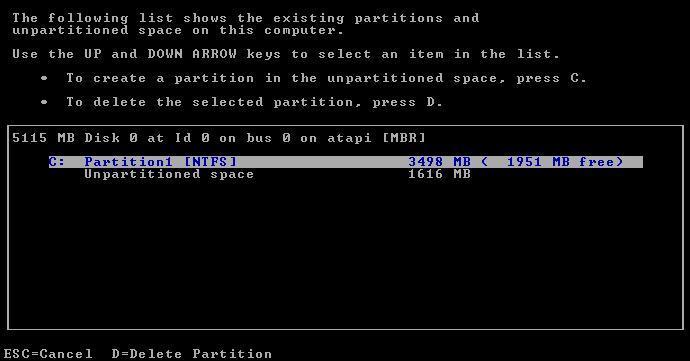 DiskpartThis replaces the well known fdisk in previous versions of Windows. Type diskpart and press ENTER. A list showing used and unused space follows (fig. 5, your list may be different). You can follow the instructions to create a partition (if there is unpartitioned space on the hard disc) or delete existing partitions. The command options are (quote from KB article):