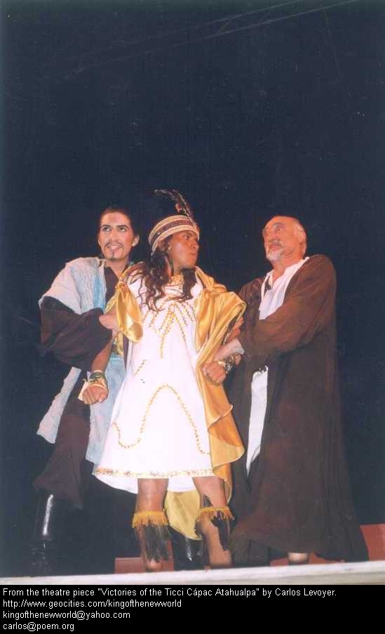 Huacho). A very important moment of the performance. Almagro (Patricio Moreno) and Pizarro (Emilio Cerezo) takes Atahualpa (Héctor Huacho) prisoner. |