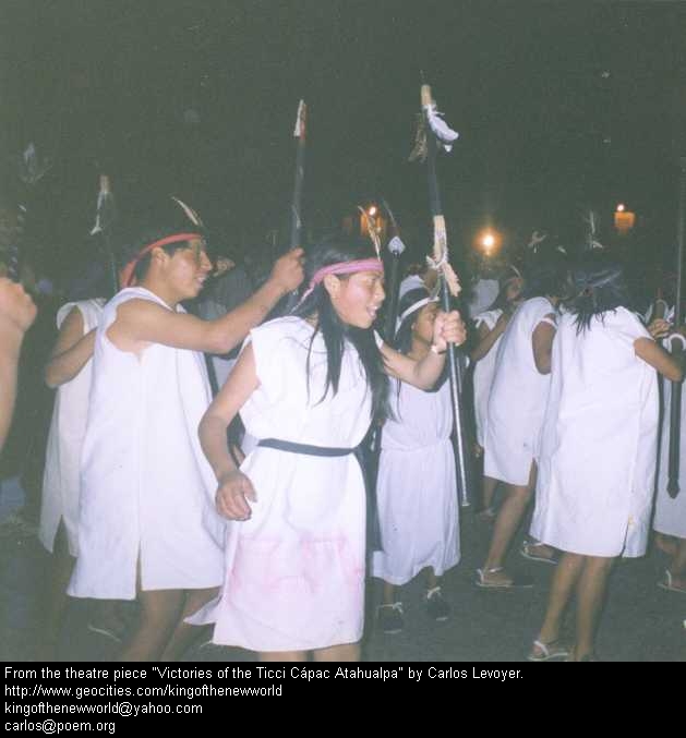 14 Armando Reyes (Calicuchima), Alfredo Luje (Topa Atao) y Carlos Levoyer (Director). Armando Reyes (Calicuchima), Alfredo Luje (Topa Atao) and Carlos Levoyer (Director).