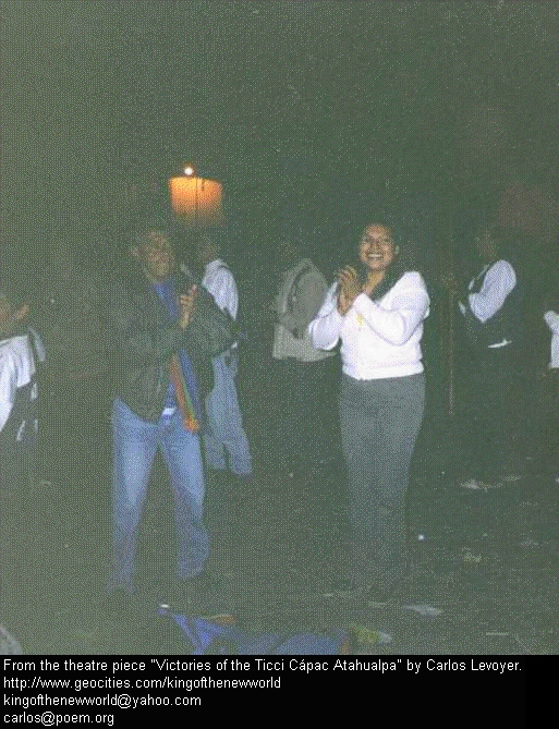 14 Armando Reyes (Calicuchima), Alfredo Luje (Topa Atao) y Carlos Levoyer (Director). Armando Reyes (Calicuchima), Alfredo Luje (Topa Atao) and Carlos Levoyer (Director).
