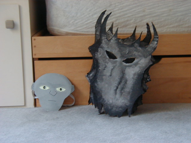 | Lauren made Gollum's mask (with glow-in-the-dark paint for eyes), as well as Sauron's mask. | |||||||||||||||||||||||||||||||||||||