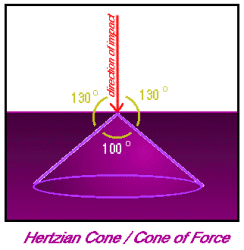 widest part somewhere inside the rock. This is called a Hertzian cone
