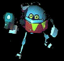 NOME: Grounder DESCRIÇÃO: robô que apareceu no Sonic 2 (Aquatic Ruin), Dr. Robotnik Mean Bean Machine e no desenho Adventures of Sonic. É quase igual ao Scratch: burro e odeia Robotnik! |