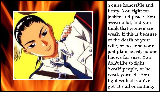 | You are quick to take action and sometimes quick to judge. Your firey spirit is seen by most as positive energy and a true joy of life. If only your temper was seen the same way, but don't let it keep you from what you truly enjoy, being alive! |