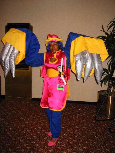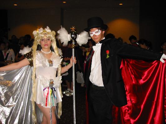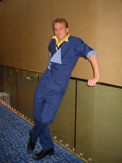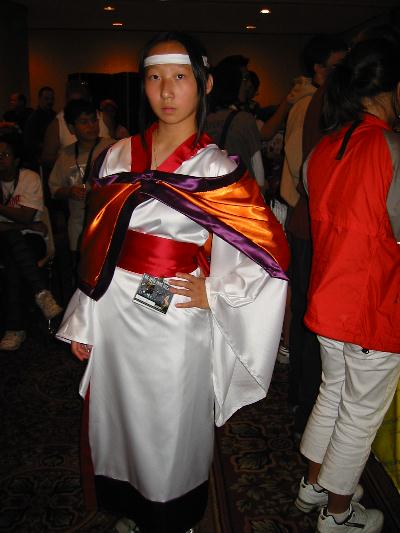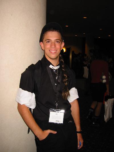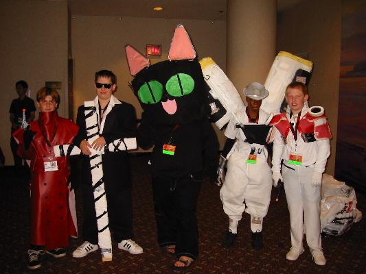 | Events: Well, I was able to see tons of Anime, see a fan play theme from Cowboy Beebop on saxophone, meet new friends, buy tons of stuff at cheap prices, and actually meet Yoshiyuki Tomino himself! Click HERE for a pic. I had a dinner-like meeting with him(after paying ten dollars to do so) and we were able to talk about Gundam and everything else. I got his autograph, and I must say, he is one awsome guy! He is so friendly and talented. Definitely the highlight of the Expo. My Most Interesting Experience: Well, since I went to the Expo as Duo (see my pic by clicking HERE) my most interesting experience was meeting Duo's fangirls. I got glomped more than I could imagine and was intimidated when girls actually were half-screaming "kawaii". Thanks to Oreo for inspiring me to dress up as Duo...I think. Most Realistic Costume: Chris Grant as Kaneda, from Akira(front/back). I swear, if it weren't for the fact that he wasn't Japanese, I'd seriously think I was face to face with Kaneda. Most Elaborite Costume: I don't know who they are, but it's cool! Most Like the Actual Character: Suzuka from Outlaw Star. I swear, this girl's face looks just like her. Most *Interesting* Costume Group: Um...just look at the pic. Coolest Costume: I think it's from Angel something-or-other Others: Ranma Sailor Moon & Tuxedo Mask You Tell Me! Another Duo Spike |