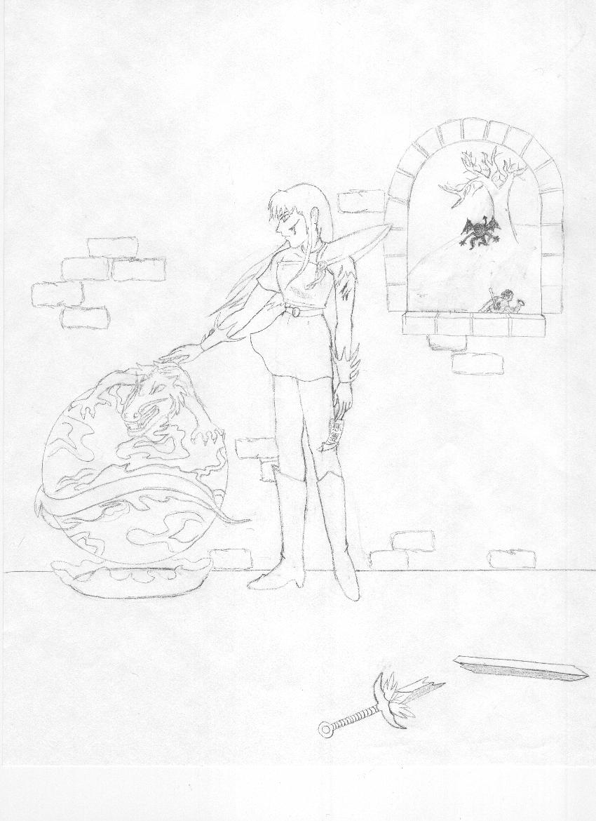 | Sorry, only pencil drawings. Click on pic for larger view, but remember to hold your cursor over the pic for a second, wait for that expander-thing in the corner to appear and click the expander-thingy, Otherwise, the pic will be reduced to a smaller size. |