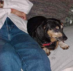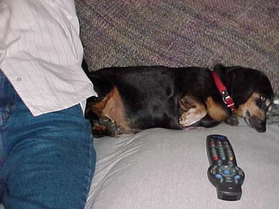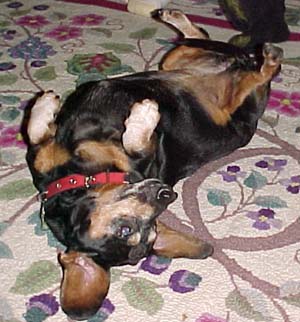 | From the side, from behind, from above, or upside down...my cousin Scarfy is one of the cutest and smartest canine-types around. |