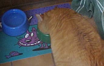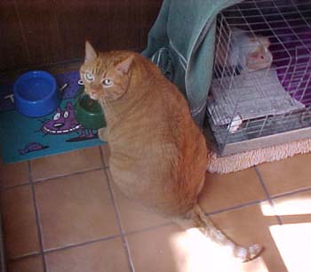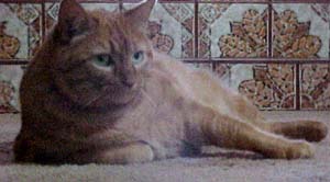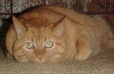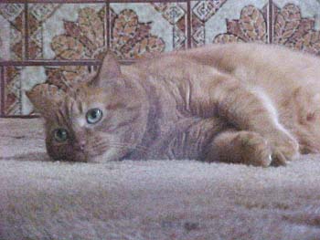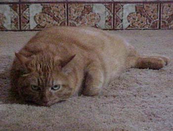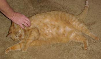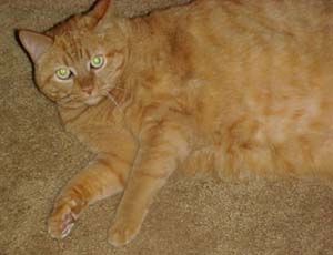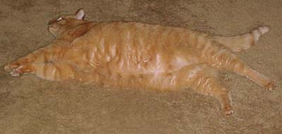 | Here you see a big orange cat who loves to eat and sprawl. Is it me? |