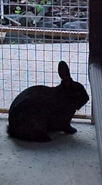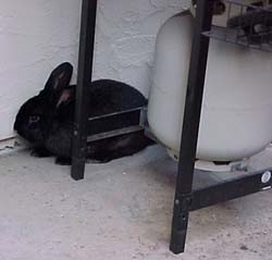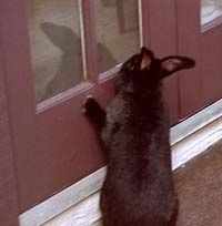 | Like any good rabbit, he investigates all possible escape routes, from doors to holes under fences. |