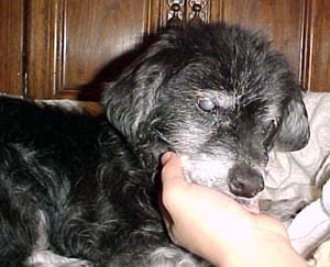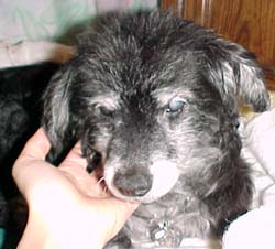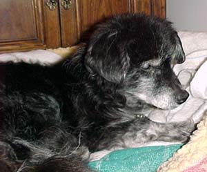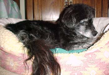 | Here's a picture of Princess. She has a really cool fluffy tail and a look of wisdom that can only come with age - she's 17 human years old! (That's about 81 years old in dog years!) Take a look at some more pictures of her below. |